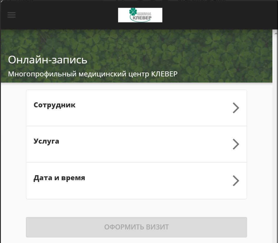 Форма записи для выбора времени, даты и специалиста