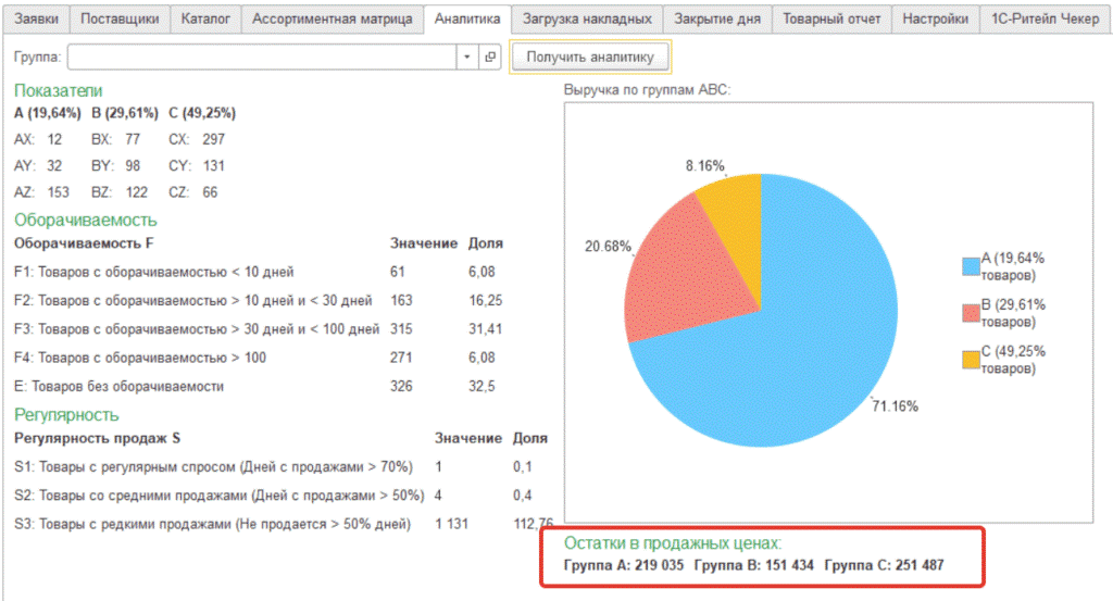 abc-анализ, оборачиваемость и регулярность продаж в сервисе 1С-Товары