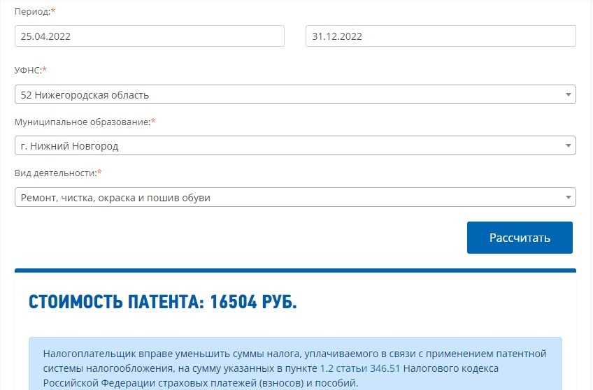 Чтобы быстро прикинуть цену патента, используйте калькулятор ФНС — он автоматически всё рассчитает, нужно только подставить свои данные.