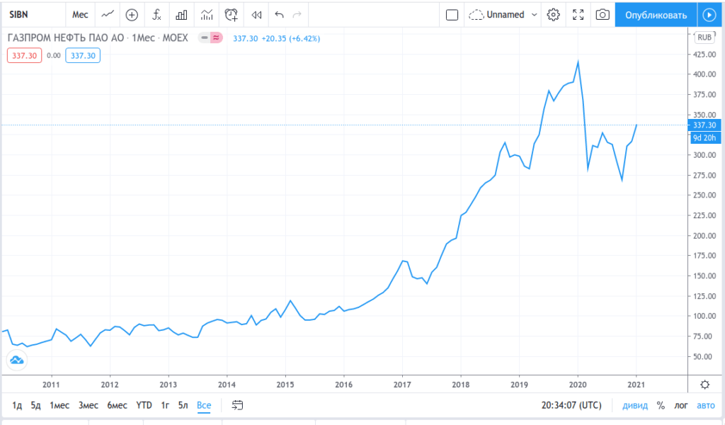 Несмотря на все тяготы и невзгоды, чувствует себя неплохо. За двадцать лет акции подорожали почти в 40 раз. Тогда они торговались в районе 8 рублей за акцию — сегодня выше 330.