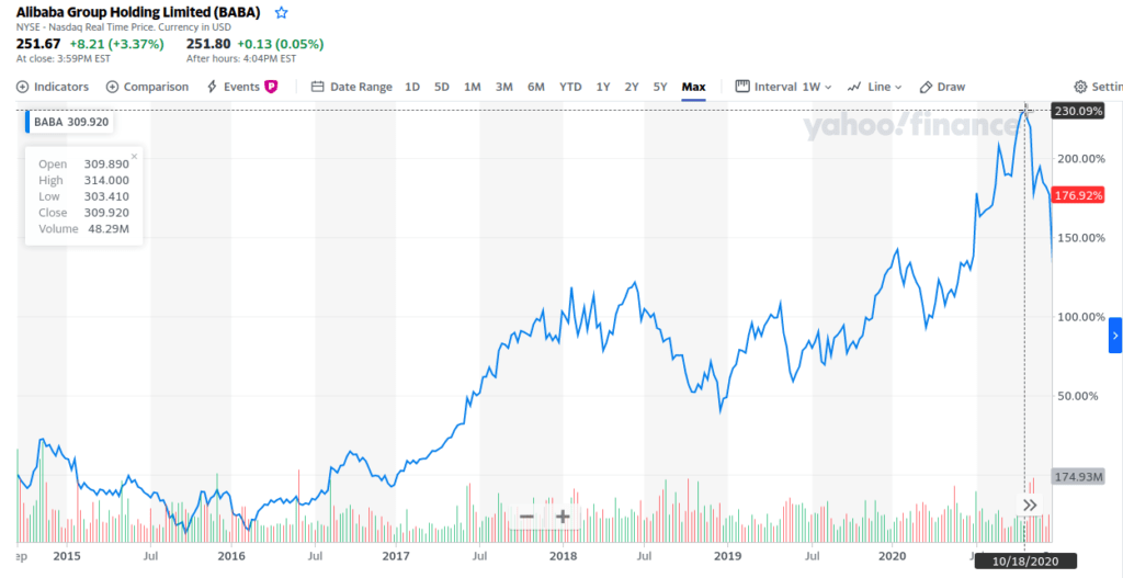 Alibaba Group (NYSE: BABA). Ни один листинг лучших азиатских акций не был бы полным без Alibaba Group Джека Ма. Это одна из крупнейших в мире компаний с рыночной капитализацией в районе ~658 млрд долларов США.