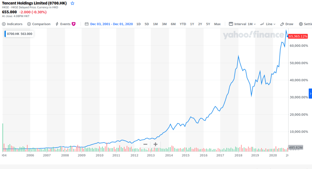Tencent Holdings (SEHK: 700) — одна из крупнейших компаний в мире в области социальных медиа, онлайн-трансляций и видеоигр с капитализацией ~6,3 триллионов гонконгских долларов.