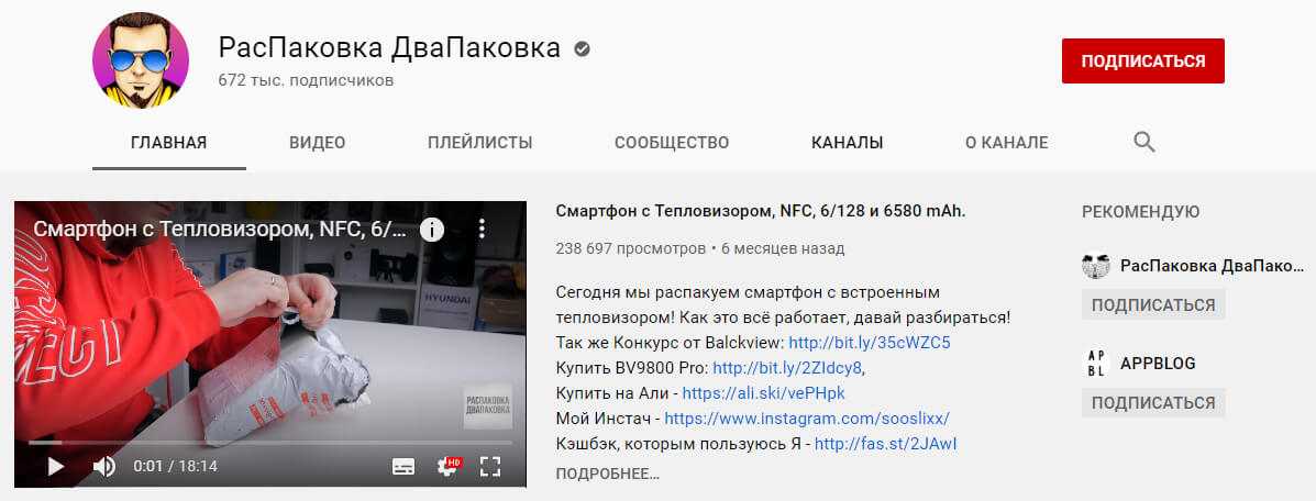 РасПаковка ДваПаковка — канал с обзорами распаковок гаджетов, автор зарабатывает на партнерке товаров из видео