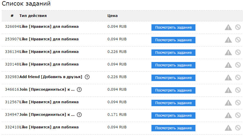 Выбираем первый вариант и сразу попадаем на страничку с доступными заданиями. Учитывайте только один нюанс, профили должны выглядеть естественно, добавляйте хотя бы по 50 друзей на страничку (иначе могут заблокировать).