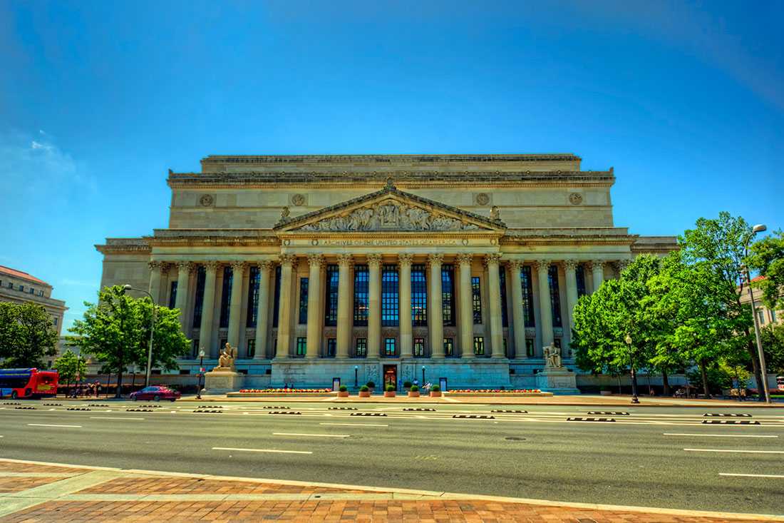 Еще одной достопримечательностью Вашингтона является Национальный архив, являющийся штаб-квартирой Национального управления архивов и документации. Посетители музея, хоть немного интересующиеся историей, несомненно, придут в восторг от просмотра всех представленных здесь документов, среди которых три основополагающих документа Соединенных Штатов – Декларация независимости, Конституция и Билль о правах.