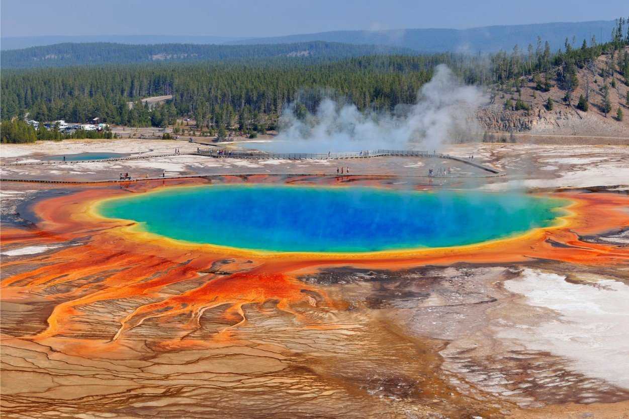 Йеллоустоун – это национальный парк на территории Монтаны, Айдахо и Вайоминга, известный своими геотермическими объектами: вулканами, гейзерами, подземными источниками. Парк находится на одноименном плато, окруженном Скалистыми горами. Он представляет собой огромное гейзерное поле. В Йеллоустоуне находится 2/3 всех гейзеров мира и половина всех геотермальных источников мира.