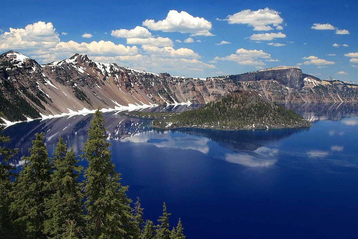 - Озеро Крейтен (Орегон) можно назвать одним из самых красивых мест в Америке. Оно расположено на высоте почти 2000 м, окружено скалистыми горами. Озеро расположено в кратере потухшего вулкана. Размышляя о том, что посмотреть в США зимой, обязательно нужно вспомнить об этом месте. Снежные склоны круто склоняются к озеру и отражаются в его чистой, зеркальной поверхности.