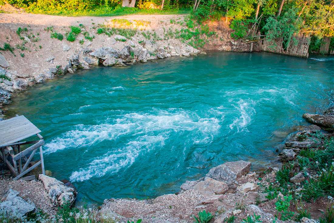 На Уфимском плато встречаются интересные карстовые источники, в том числе крупнейший родник России – Красный Ключ. Стоит посетить и ещё более красивое подобное место – озеро-источник Сарва. Есть похожий объект и около Уфы – Голубое озеро.