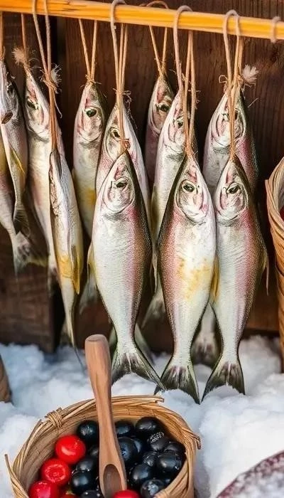 Ягоды – клюква, морошка, брусника – добавляют витамины и неповторимый вкус. Травы и коренья используются для приготовления лекарств и приправ. Все эти ингредиенты добываются и хранятся с использованием традиционных методов.