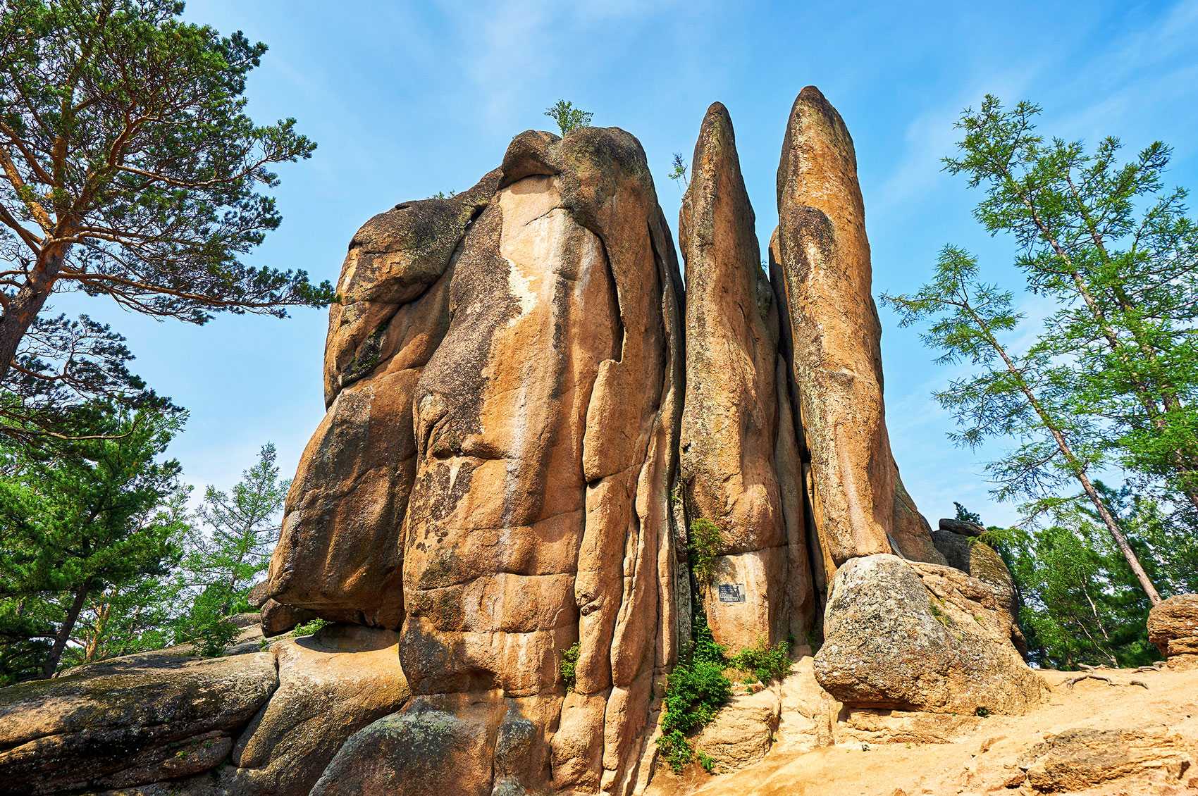 Национальный парк «Красноярские столбы» старейший в России, и его «экспонаты» поистине завораживают. Столбы — это сиенитовые скалы, похожие на застывшие фигуры людей, существ, предметов (есть устоявшиеся названия, но вдруг увидишь что-то своё). Во многих скалах скрываются проходы и лазы.