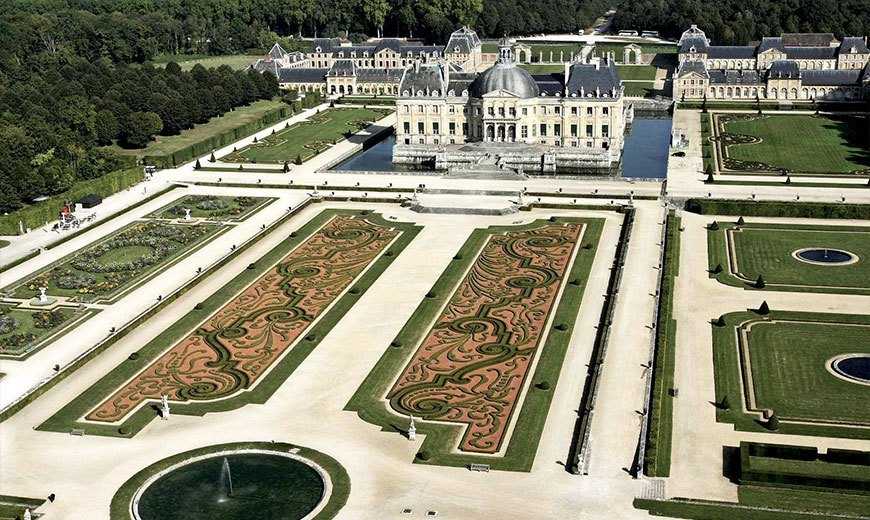 Этот великолепный парк воплотили в жизнь дизайнер Ленотр, архитектор того времени Лево и художник Лебрен. У замка богатая история. Он знал времена упадка и расцвета. Современный вид замок приобрел после реставрации французским промышленником Альфредом Соммье. Сейчас ландшафтный парк Во-ле-Виконт имеет несколько геометрических садов, в которых расположены скульптуры и фонтаны. Парк был создан для проведения крупных праздников и по сути был ареной для театральных представлений.