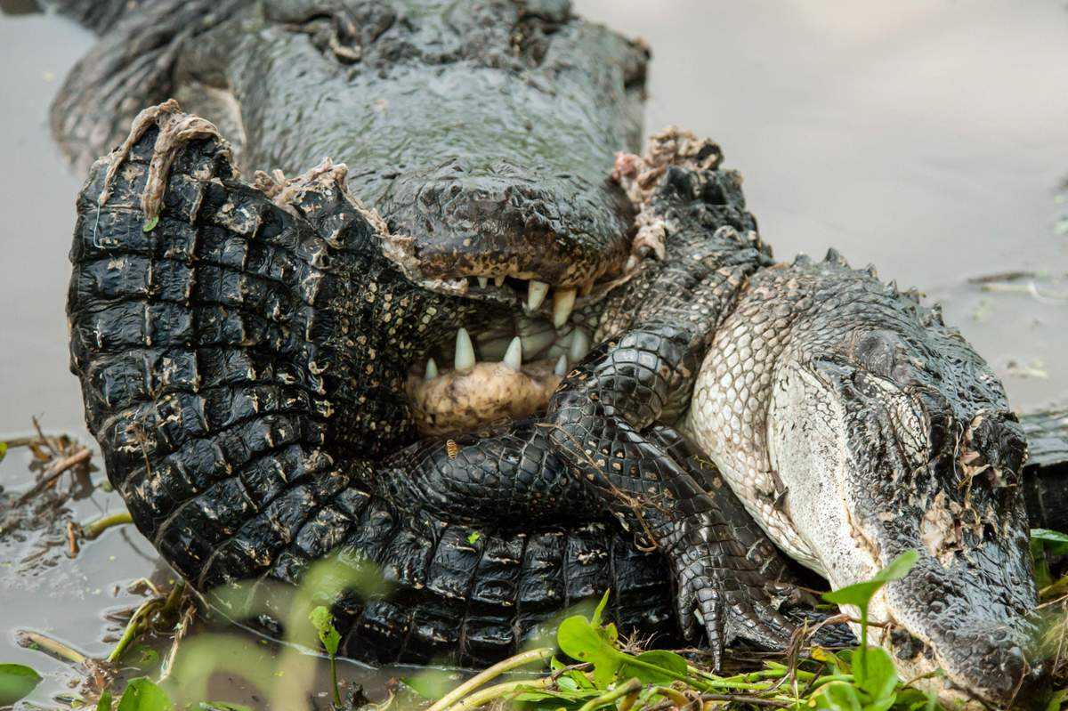Аллигатор поедает своего же сородича.