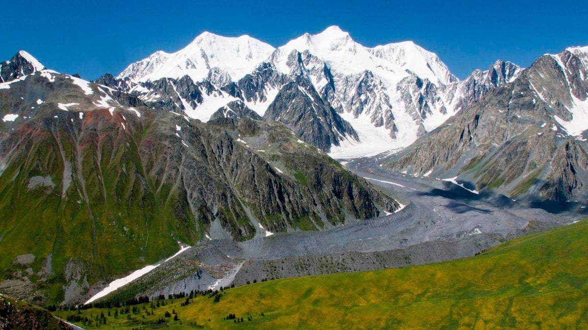 Возвышающаяся в Республике Алтай, Белуха представляет собой трехпиковый горный массив, который возвышается вдоль границы России и Казахстана, всего в нескольких десятках миль к северу от точки, где эта граница встречается с границей Китая. На горе есть несколько небольших ледников, в том числе ледник Белуха.