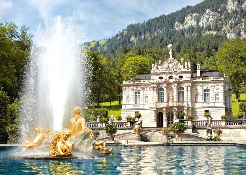 Король Людвиг Отто Фридрих Вильгельм, называемый просто королем Людвигом II, профинансировал строительство ряда замков. Единственный замок Людвига, строительство которого было полностью завершено – это Линдерхоф. Замок, известный как королевская вилла, является продолжением охотничьего домика его отца, короля Максимилиана II. В 1874 году Людвиг взял сторожку Кёнигсхойшена, разобрал ее и перевез на нынешнее место замка. Оригинальный деревянный домик был преобразован за счет добавления камня в экстерьер, а также тамбура и лестницы. На территории дворца, строительство которого завершено в 1878 году, есть скрытый грот с лодкой в виде ракушки на подземном озере, освещенном яркими огнями. Людвиг построил в замке зеркальный зал и 2 гобеленовые комнаты. Как и во многих немецких замках, фотографировать внутри замка запрещено.