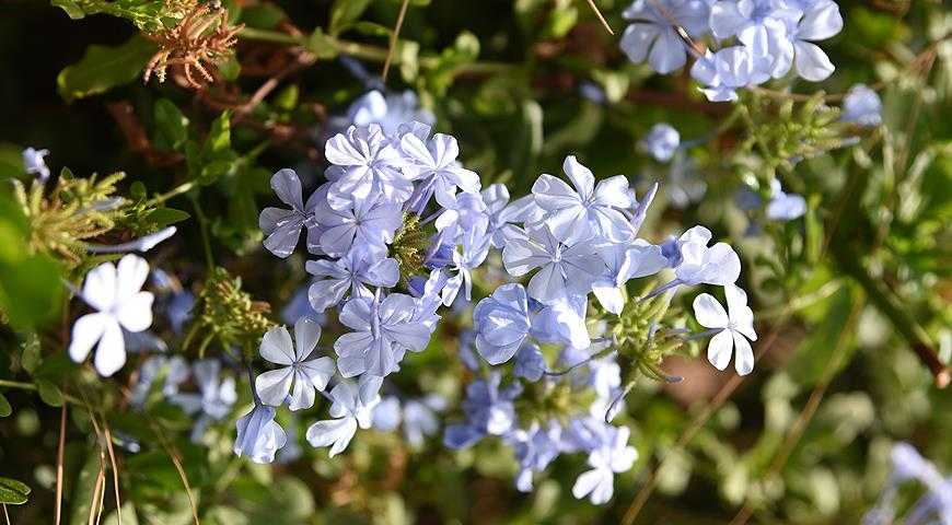 Нежные голубые цветочки, свисающие из-за забора какой-нибудь местной виллы — это скорее всего плюмбаго или свинчатка.