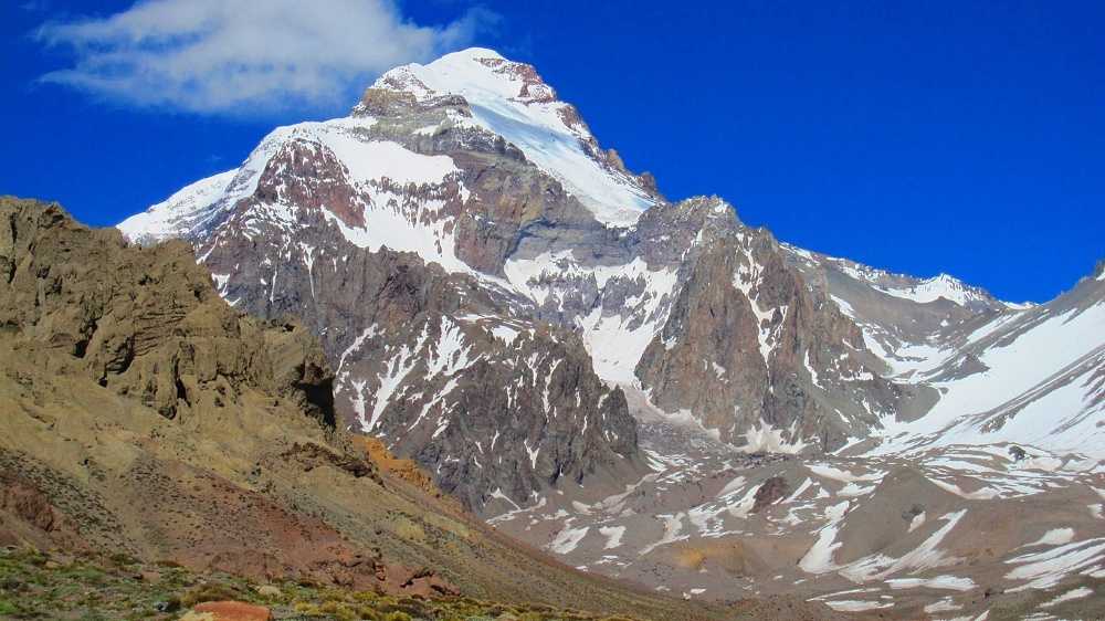 Вершина является самой значительной в Южной Америке, находится она в Андах (Аргентина). Высота горы – 6962 м. Она представляет собой самый большой на планете потухший вулкан. Переводится его название как «каменный страж». Покорять гору проще с северной стороны, а с юга и юго-запада путь на ее вершину значительно сложнее. Впервые подъем на гору совершил Эдвард Фицджеральд в 1897 году.