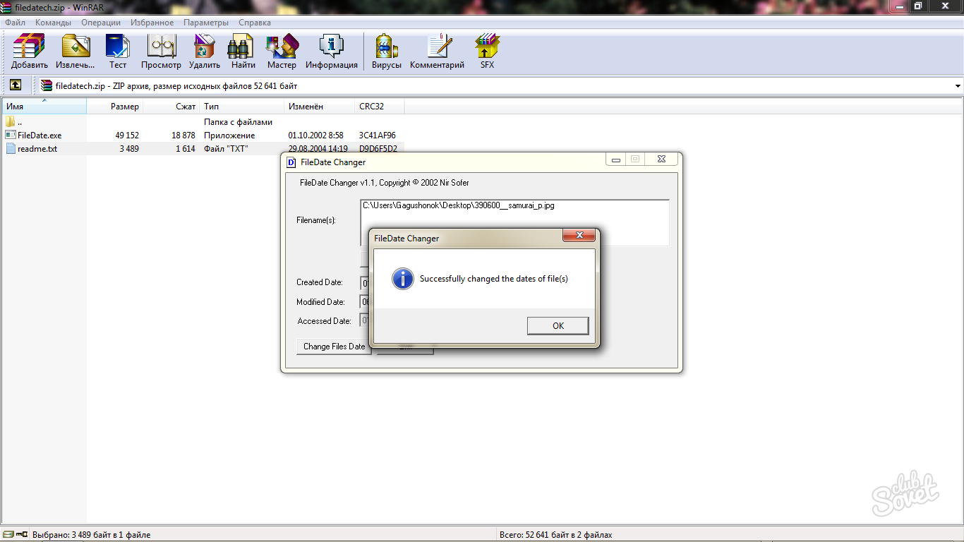 Если вы увидели такое сообщение на экране, то процедура прошла успешно. Вы найдете свои файлы с новой датой на прежнем месте.