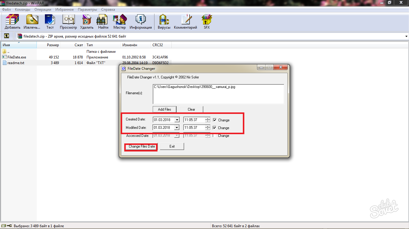 FileDate Changer v1.1 — Изменить время создания / изменения файлов