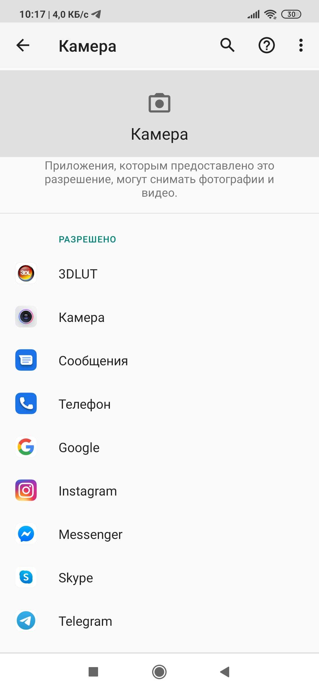 Вы увидите список разрешений и узнаете, для каких приложений они одобрены. Например, в пункте «Камера» перечислены все приложения, которые имеют к ней доступ.