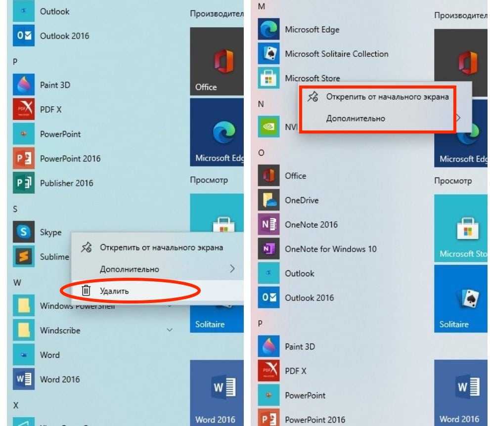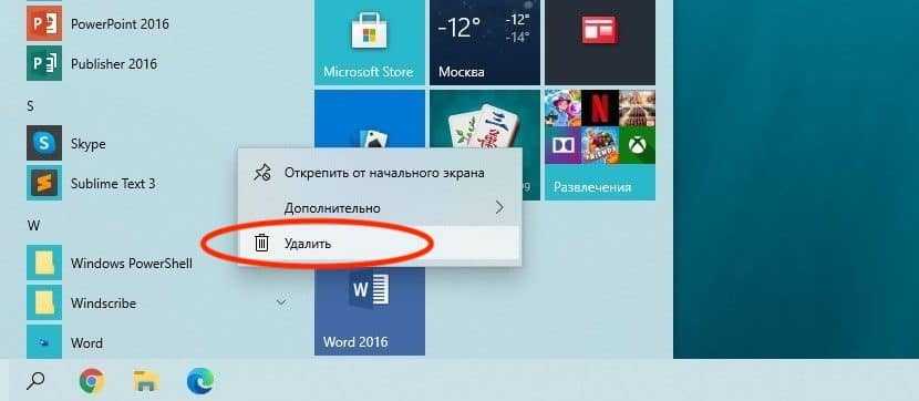 Уже здесь в меню Пуск вы сможете понять какое приложение возможно удалить, не прибегая к дополнительным действиям и программам. Для этого наведите курсор на ненужную программу и щелкните правой кнопкой мыши . Контекстное меню покажет доступна ли функция удалить.